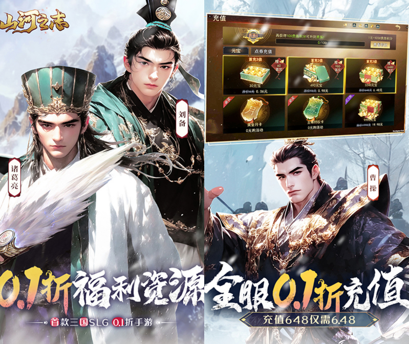 0.1 折手游平台新游推荐来袭!《山河之志》是一款以三国为背景的大型策略战争手游,在这里,你可招名将、练雄兵,体验荡气回肠的史诗战役;更可置身宏大沙盘,合纵连横,攻城略地,是割据一方,还是席卷天下,一切尽在你指尖挥斥方遒,每一步抉择都将铸就独属于你的青史传奇!愿您一统天下归来,仍是此间少年,仍具气吞山河之志!