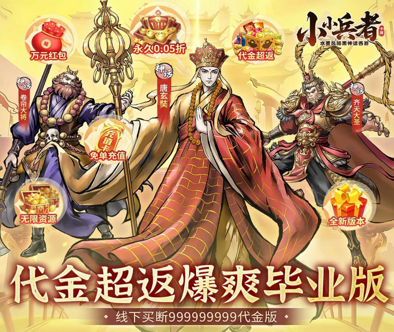 0.05 折手游平台之新游推荐:小小兵者,是一款最还原西游的经典神话卡牌游戏,在游戏里所有的神话神将玩家可以通过招募来将他们收入麾下,并带着自己组建好的神将去傲视群雄吧。