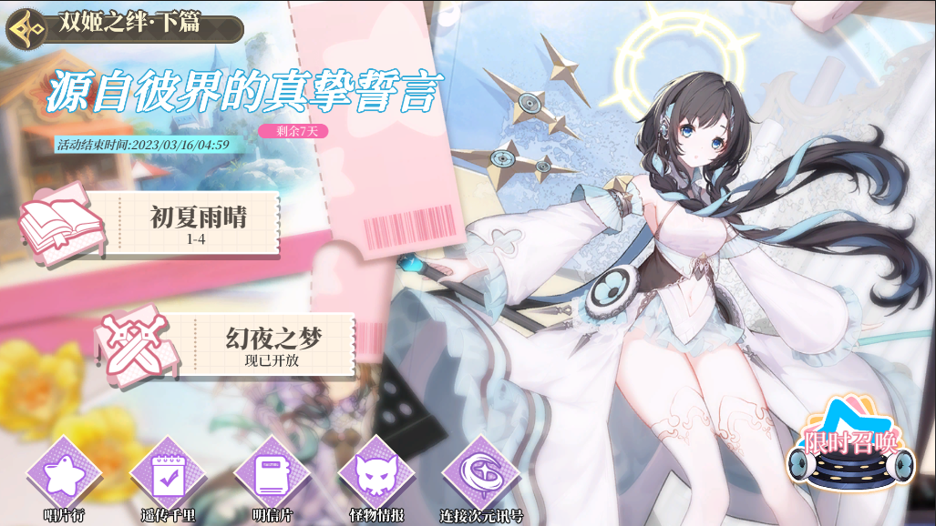 ★活动情报:活动期间累积活跃即可获得【限定头像框】、超稀有乐姬「夏语遥」;完成迷宫关卡,收集宝箱中的道具可以兑换乐姬皮肤「夏语遥-双姬之绊」