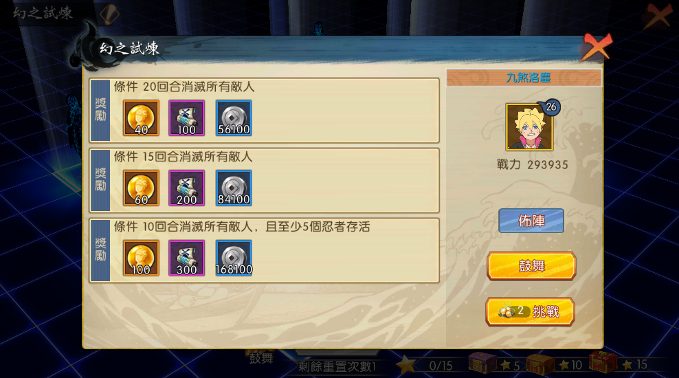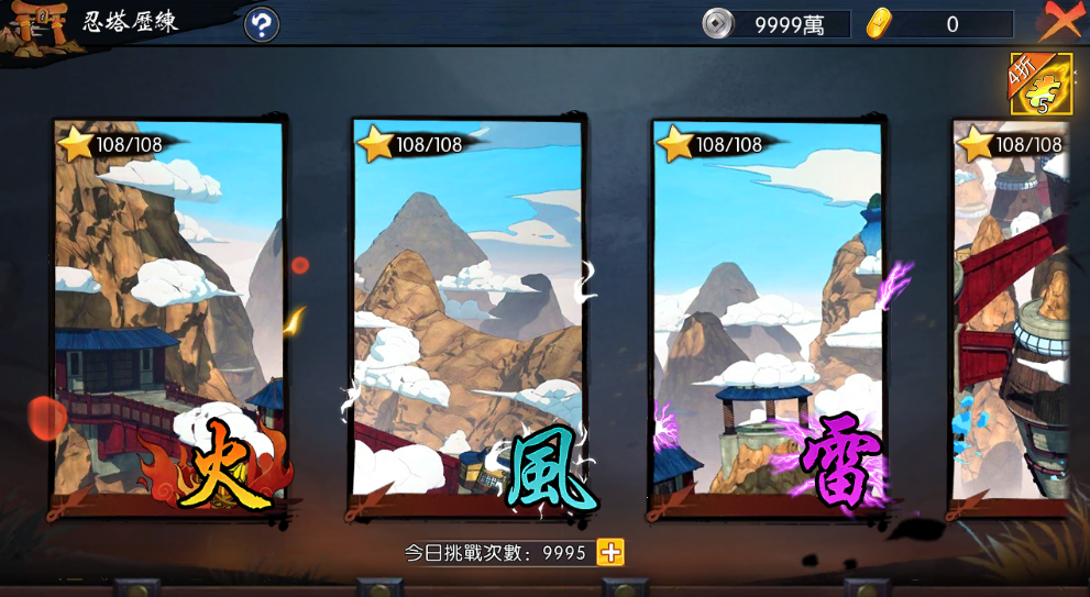 - 每座忍塔分36层,挑战上一层成功后,解锁下一层;