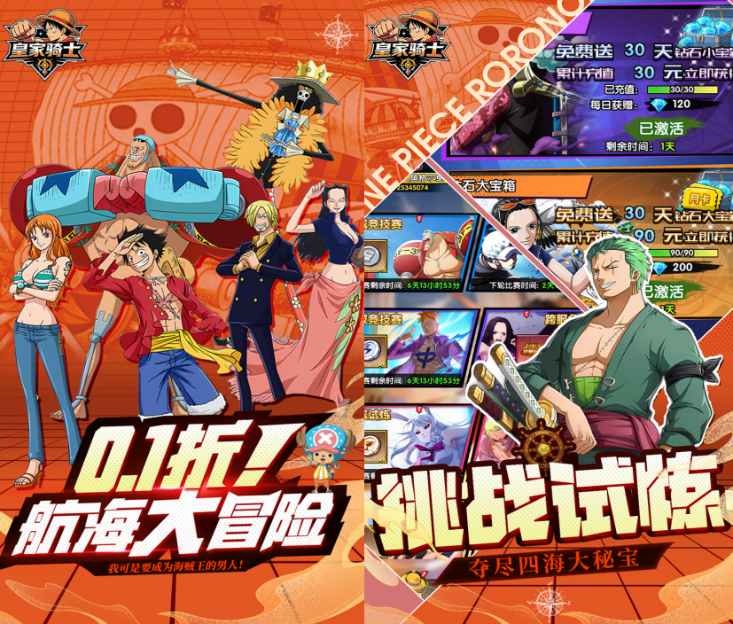 折扣手游app大全中的《皇家骑士(0.1折航海大冒险)》是一款热血航海主题的卡牌养成放置手游,更有人气爆棚的海贼角色化身强力伙伴等待你的招募!轻松护肝,挂机变强,在这片浩瀚的蔚蓝大海上开启一段独属于你的传奇航海冒险!